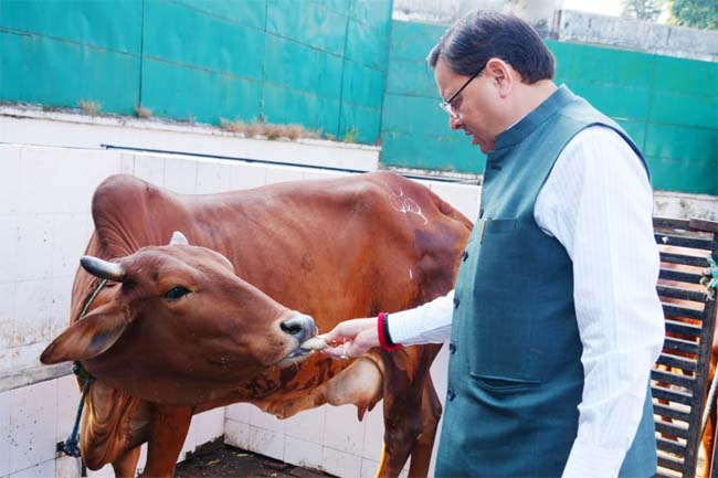 देहरादून। मुख्यमंत्री पुष्कर सिंह धामी ने बुधवार को मुख्यमंत्री आवास स्थित गौशाला में गोवर्धन पूजा के अवसर पर गौमाता की पूजा-अर्चना कर प्रदेश की खुशहाली, समृद्धि और जन कल्याण की कामना की।